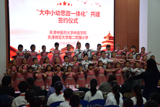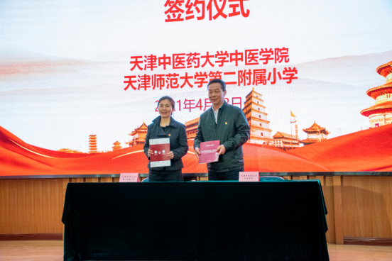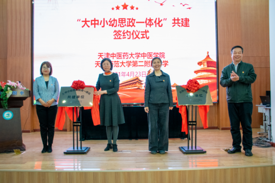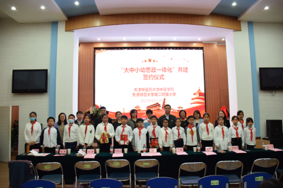 为深入贯彻落实习近平总书记关于“要把统筹推进大中小学思政课一体化建设作为一项重要工程”的重要指示精神和习近平总书记在党史学习教育动员大会上的重要讲话精神,2021年4月23日下午,天津中医药大学中医学院与天津师范大学第二附属小学开展“传承岐黄风采 献礼建党百年”系列活动暨天津中医药大学中医学院与天津师范大学第二附属小学“大中小幼思政教育一体化”共建仪式。