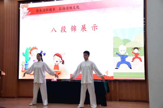 签约揭牌仪式结束后,中医学院学生工作办公室主任成一丹做张伯礼院士抗疫事迹宣讲,中医学院学生王霄、张珑耀现场展示八段锦。中医学院学生志愿者郭源同学讲述了中医文化传统知识,通过教授学生们生活中的中医小妙招进行现场互动,将会场氛围推向高潮。