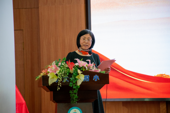 之后,河西区教育局副局长吴晓红讲话,她指出刘毅书记为在场的师生上了一堂非常生动的微课,对天津中医药大学中医学院对河西区“大中小幼思政教育一体化”建设的支持表示感谢,并高度肯定了中医学院与师大二附小携手共建的重要意义。吴晓红副局长强调,不同学习阶段对孩子们的要求是不同的,我们要做好顶层设计,提高政治站位,坚决落实立德树人根本任务。吴晓红副局长希望同学们珍惜学校提供的教育环境和机会,从小养成良好的行为习惯,从小立志,长大成为祖国栋梁之材。