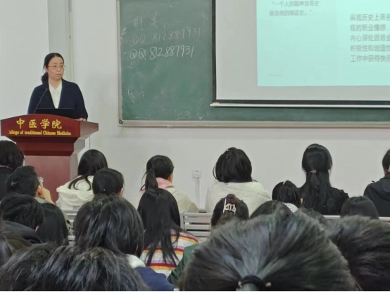 最后郑老师向同学们介绍了她所在的出版社——中国古籍出版社,希望有越来越多的中医药学子加入中医古籍编辑的大家庭里。巴丹曾说过:“没有阅读就不可能有个体心灵的成长,不可能有个体精神的完整发育。阅读虽不能改变人生的长度,却能延展人生的深度和厚度;阅读虽然不能改变人的长相,却能塑造个人的品质和气象。”