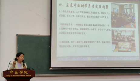 天津中医药大学朱丹丹讲师 科技赋能健康生活——人工智能时代中医节气养生发展现状与趋势:介绍了二十四节气与中医学的关系,二十四节气中的中医养生现状,中医导引养生法与传承现状,导引法现状调研以及导引养生新平台。