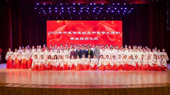 2024年中医传承班迎来成班15周年,为进一步增强学生文化自信,强化学生的中医思维、实践能力和文化素养,天津中医药大学中医学院于2024年11月19日举办中医传承班成立15周年大会暨2024年中医传承班及中医学九年制拜师仪式。天津中医药大学名誉校长张伯礼院士、新加坡中医管理委员会主席张俰宾、副校长郭义教授出席,中医学院领导班子成员、导师代表及学生代表共计500余人参加了此次活动。天津中医药大学中医传承班在名誉校长张伯礼院士的倡导下于2009年建班,是在“院校教育+师承教育”的模式下成立的中医特色专业实践育人班,十五年共培养学生769人,其中200人在校学习,569人走向工作岗位。