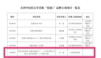 扎实开展党纪学习教育,推动党建引领学院事业发展。深入学习习近平总书记关于党纪学习教育的重要讲话和重要指示精神,教育引导党员干部在学纪知纪明纪守纪中把纪律规矩转化为政治自觉、思想自觉、行动自觉,深刻领悟“两个确立”的决定性意义,坚决做到“两个维护”。认真学习贯彻党的二十届三中全会、全国教育大会精神,深入学习贯彻习近平总书记关于高校党建工作的重要论述,推动党建和业务深度融合。中医学院团委获评2024年天津市五四红旗团委。扎实开展基层党建研究,学院获批天津中医药大学首批“党建+”品牌立项,获批学校教师队伍建设项目2项。