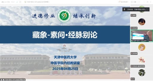 2025年4月25日上午十点半,天津中医药大学内经教研室联合首都医科大学内经教研室、河北中医药大学内经教研室,以线上线下相结合的方式,开展联合教研活动。本次活动是继2024-2025年第一学期,联合长春中医药大学内经教研室集体教研活动之后,在2024-2025年第二学期进行的第一场虚拟教研活动。