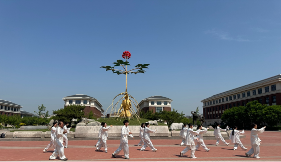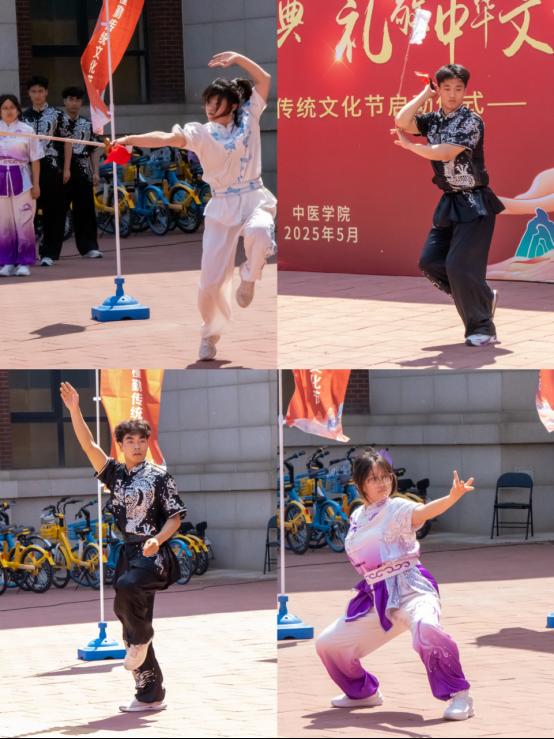 武韵风华耀杏林。体育健康学院学生伴着铿锵有力的鼓点,刀光剑影间尽显飒爽英姿,长拳刚劲迅猛,太极行云流水。他们以矫健的身姿、利落的招式,将中华武术的刚柔并济展现得淋漓尽致,一招一式皆蕴含着深厚的文化底蕴。