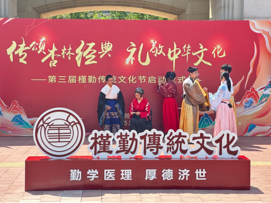 为弘扬中华优秀传统文化,践行“天中精神”,2025年5月13日下午,中医学院“传颂杏林经典 礼敬中华文化”第三届槿勤传统文化节启动仪式在人参广场举办。天津中医药大学党委副书记张华泉、副校长郭义、副校长张俊华、党委学工部副部长王楠出席,中医学院领导班子及学院师生代表共计200余人参加了启动仪式,学院大中小思政一体化共建单位天津一中滨海学校师生也参与了本次活动。