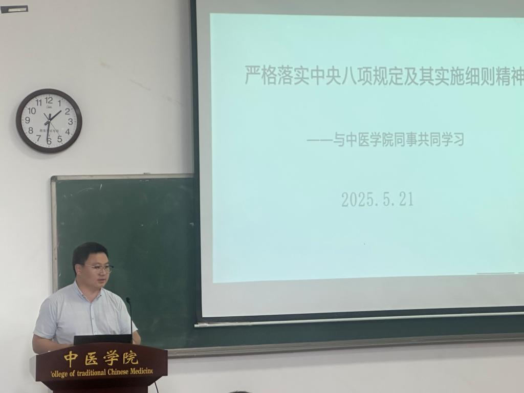 持之以恒正风肃纪:中医学院党委开展深入贯彻中央八项规定精神学习教育专题党课