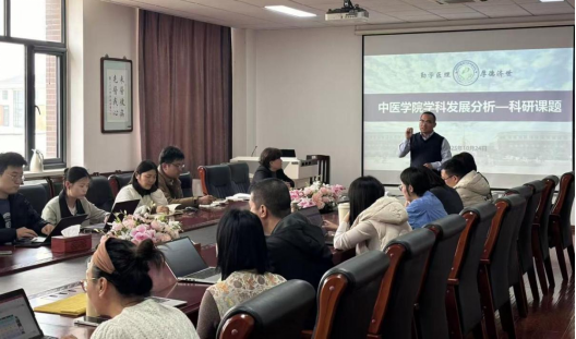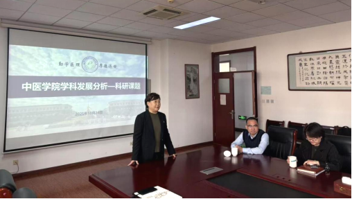 为扎实推进学院学科建设高质量发展,助力青年教师成长,激发科研创新活力,部署2026年度国家自然科学基金项目申报工作,中医学院于2025年10月24日下午,组织召开中医学院学科建设研讨会,并启动2026年度国家自然科学基金项目申报工作。会议由中医学院院长阚湘苓主持,科研处处长王跃飞出席本次会议,学院领导班子成员、各教研室青年教师共同参加。