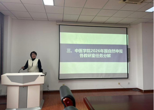 随后,中医学院科研副院长田露从学院目前在研项目情况入手,系统梳理了各教研室科研基础与资源优势,分析了当前申报工作中存在的短板与提升方向。围绕2026年国自然申报目标,她结合学科特点与教师研究方向,对任务进行了细化分解,并提出“一对一辅导、分层推进、全程跟踪”的工作机制,力求实现有组织科研与个性化指导的有机结合。