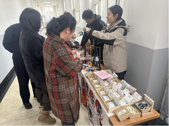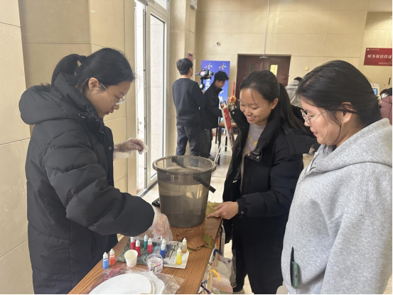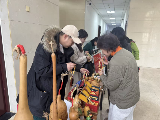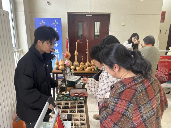 文化市集区域更是热闹非凡,电子信息职业技术学院师生深度沉浸于中医药文化的独特魅力之中。大家不仅品尝了清咽利喉饮、舒郁养颜茶、清肝明目茶等多款特色养生茶饮,亲手制作了兼具安神助眠、防感流涕等功效的中药养生香囊,还近距离观赏体验了中药合香珠、漆扇等传统手作。在“杏林艺韵”非遗葫芦烙画与中医药文创产品展区,师生们驻足细赏,直观感受中华优秀传统文化的深厚底蕴与时代活力。