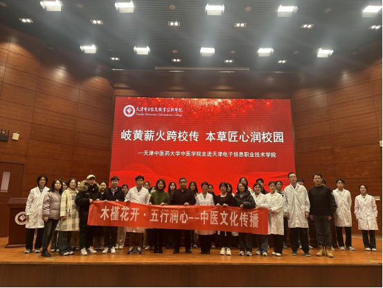 为弘扬中华优秀传统文化,推动中医药知识走进职业院校,11月24日,中医学院组织师生代表赴天津电子信息职业技术学院开展中医药文化传播系列活动。活动以“岐黄薪火跨校传本草匠心润校园”为主题,通过中医专题讲座、义诊服务、文化市集三大板块,让电子信息职业技术学院的师生们沉浸式感受中医药文化的魅力。