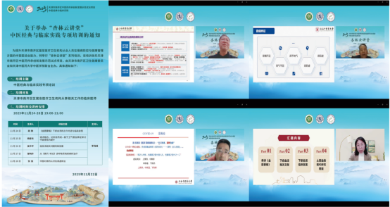 本次培训以“云端授课、名家引领、面向基层、服务实践”为特色,汇聚多方优质中医药教育资源,构建经典传承与临床应用并重的学习体系,助力基层中医药人才能力提升。