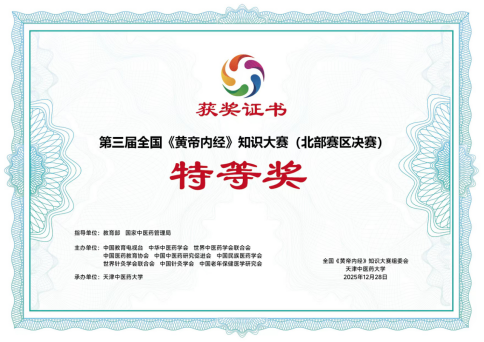 成功举办第三届《黄帝内经》知识大赛天津赛区、北部赛区竞赛,两支队伍分别获得特等奖和二等奖,成功晋级全国赛。在第九届“岐黄天下杯”世界中医翻译大赛中斩获佳绩,摘得英语组团体一等奖,英语组个人一等奖4项、二等奖3项、三等奖7项;日语组个人一等奖1项、三等奖5项。学生在“挑战杯”等赛事中获市级以上奖项19项,国家级大创立项3项。《津沽名医调研及传承谱系研究》项目在2025年国家级大学生创新创业训练计划项目立项中获国家级重点支持领域项目。