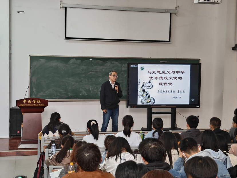 “星星之火,可以燎原”。马克思主义学院院长李大凯教授为我院师生作“马克思主义与中华优秀传统文化的现代化”专题讲座。“文而化之,育天下之大成”。传统文化,是华夏根基;马列主义,是当代信仰。两相结合,以成中华之大,不修仁心,不学君子,终非正途;泥于法古,墨守成规,不是好路。师曰:进德修业,继承创新,永葆初心,走向未来。闻师慧语,如沐春风,谨记,再拜。