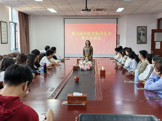 为进一步加深中医学院学生会骨干们对于责任担当与学生会纪律的认识,提高整体工作能力和服务水平,促使学院学生工作更加规范化、秩序化运行,推动新学期学院工作顺利开展,2024年9月23日,第十九届中医学院学生会骨干座谈会在槿勤园甲三楼会议室召开,中医学院党委副书记成一丹老师、中医学院团委书记刘智老师出席此次会议。