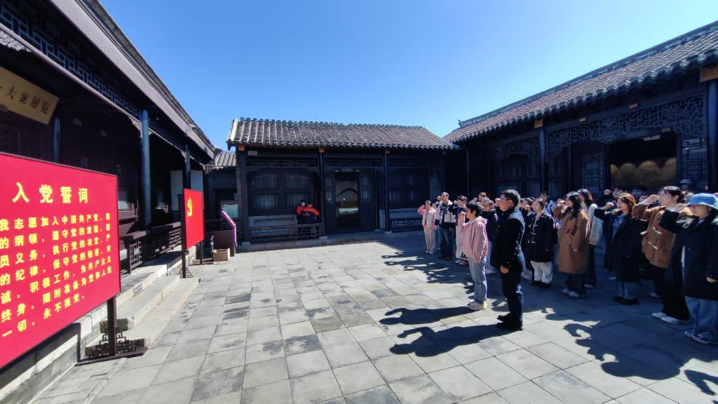 石家大院作为全国首批廉政教育基地,曾是天津地委、行署的办公地,也是刘青山、张子善贪污腐败案的见证地。在天津理工大学中环信息学院大学生志愿者的讲解下,党员们参观了教育基地的各个展区,以发生在天津的新中国反腐败第一大案为背景,通过实物实景、历史照片和文字描述,讲述了刘、张二人由革命功臣走向贪腐深渊的蜕变过程,同时也展现了我们党推进党的自我革命,持之以恒坚决打好反腐败斗争攻坚战持久战的决心和毅力,让我们真切地感受到“贪廉一念间,荣辱两重天”的巨大反差。参观后,吴妍同志带领党员师生重温入党誓词,增强党员纪律意识,不忘初心使命,筑牢拒腐防变防线。