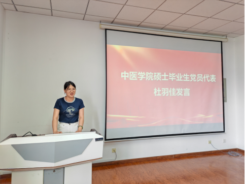 会议最后,吴妍书记为毕业生党员讲授党课并深情寄语。吴妍书记从守好党的“生命线”为出发点,从“一根灯芯”到中央八项规定,鼓励毕业生党员在新时代背景下,要以信念、人格、实干立身,不断提升专业素养,以创新思维推动中医事业发展。吴妍书记寄语毕业生党员:一是永葆“政治本色”,把学习贯彻习近平新时代中国特色社会主义思想作为终身课题,将“人民至上、生命至上”融入从医信仰,让党旗在守护人民健康的战场上高高飘扬;二是锤炼“过硬本领”,以“如临深渊、如履薄冰”的敬畏之心精进医术,用扎实的专业能力为患者驱散病痛;三是坚守“医者仁心”,在利益诱惑前守住底线,在复杂矛盾中保持初心,用温暖与良知书写医者大爱践行大医精诚。