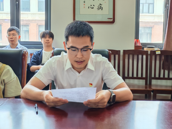 在发言交流环节,本科毕业生党员代表佟佳蓬、硕士毕业生党员代表杜羽佳分别发言。两位毕业生党员分享在校期间的学习成长经历,表达了对党组织培养、老师教导和同学帮助的感激之情。两位同学表示,在未来的工作和生活中,将时刻牢记党员身份,以党员标准严格要求自己,在医疗卫生岗位上发光发热,用实际行动践行医学生党员的初心和使命,为守护人民健康贡献力量,不负母校与党组织的期望。