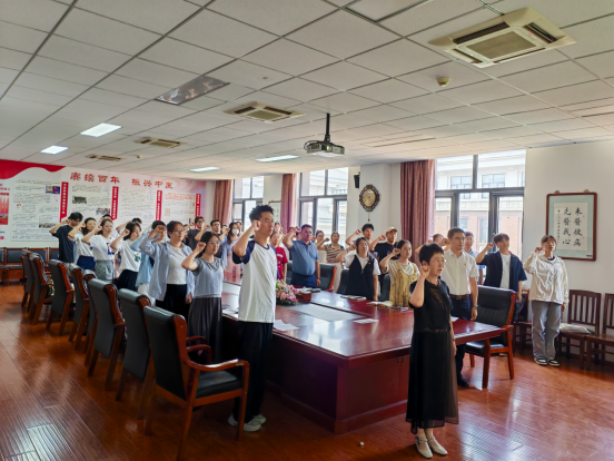 会议伊始,吴妍书记带领全体党员重温入党誓词,党员们面向鲜红的党旗,高举右拳,以铿锵有力的誓言,重温对党和人民许下的庄严承诺,表达了对党的忠诚和为共产主义奋斗终身的决心。