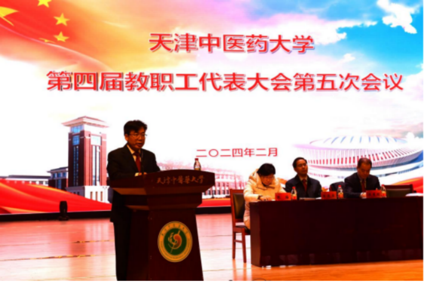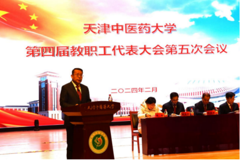 校党委书记刘革生在讲话中指出,2024年是中华人民共和国成立75周年,是实施“十四五”规划的关键一年,也是加快推进新一轮“双一流”建设,乘势而上推动各项事业实现新跨越的关键之年。刘革生书记就2024年学校重点工作提出三点意见:一、牢记嘱托,把习近平总书记视察天津重要讲话精神内化为推动学校事业高质量发展的强大动力。要把学习宣传贯彻习近平总书记视察天津重要讲话精神作为学校当前和今后一个时期的首要政治任务。全体教职工要学在深处、谋在新处、干在实处,确保见行见效、善作善成。二、奋斗担当,把汇聚起的师生力量转化为推动学校事业高质量发展的崭新作为。要对标总书记谆谆嘱托和市委部署要求,落实立德树人根本任务,以“时不我待、只争朝夕”的紧迫感,以“时时放心不下、事事心中有底”的责任感,结合学校实际,科学谋划、有力落实2024年各项目标任务。三、群策群力,把主题教育成果和巡视整改成效深化为推动学校事业高质量发展的可靠保障。要充分发挥教代会作用,团结引领全校教职员工完成好立德树人根本任务,推进学校事业高质量发展,凝心聚力、砥砺前行,奋力开创中国特色、世界一流中医药大学建设的新局面,以更加优异的成绩向新中国成立75周年献礼!