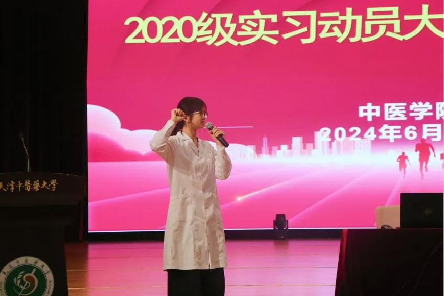优秀毕业生代表、2019级中医5班林沛哲和优秀学生干部代表、2019级中医学(“5+3”一体化)2班刘铭涵,为即将迎来实习生活的学弟学妹们分享了他们的实习经验和心得。学长分享了自己从初入医院的困惑和被动,到逐渐适应并成长为能独立处理病例的实习医生的经历。他鼓励大家珍惜实习机会,充分利用这段时间多观察、多思考、多学习,并虚心向带教老师请教,与同学们相互学习、共同进步。同时,他也提到了实践能力培养的重要性,鼓励大家主动争取动手实践的机会,提高自己的临床操作能力和解决问题的能力。学姐则进一步强调了实习的价值和意义。她表示,实习不仅是检验所学知识是否扎实的试金石,更是医学生成长和进步的最好时机。她分享了自己在实习期间的感悟和体会,特别是在面对危重患者时,如何以患者为中心,尽力减少他们的痛苦,让他们有意义地活着。她强调,作为医学生,要时刻牢记自己的职责和使命,坚守医德医风,尊重患者、关爱患者、服务患者。